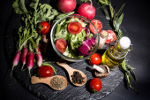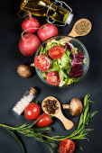 Zdjęcie "Warzywa na dietę, różne przyprawy na czarnym tle" może być wykorzystywane do celów osobistych i komercyjnych zgodnie z warunkami zakupionej licencji Royalty-free. Obraz jest dostępny do pobrania w jakości wysokiej rozdzielczości do 5760x3840.