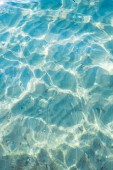 Morskie kolorowe ryby w wodzie, nieostre tło wody widok z góry.