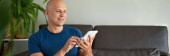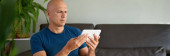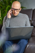 Facet rozmawiający przez telefon komórkowy na kanapie