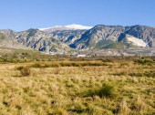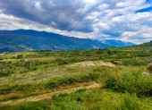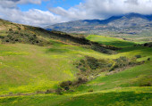 Góry Asturii na północy Hiszpanii w pochmurny dzień