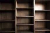 Drewniane półki na książki. Drewniane regały i panele ścienne z forniru dębowego MDF. Zbliżenie