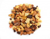 Mieszanka różnych orzechów i suszonych owoców na białym, Migdały, Rodzynki, Orzechy, top vie