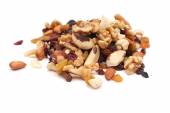 Mieszanka różnych orzechów i suszonych owoców na białym, Migdały, Rodzynki, Orzechy, top vie