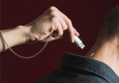 Zdjęcie "Ręka kobiety kucharz wyciska czosnek w metalowym wyciskaczu na czarnym tle, zbliżenie, klasyczny niebieski, kolor mody, kolor 2020" może być wykorzystywane do celów osobistych i komercyjnych zgodnie z warunkami zakupionej licencji Royalty-free. Obraz jest dostępny do pobrania w jakości wysokiej rozdzielczości do 5760x3840.
