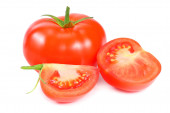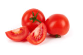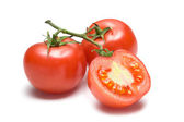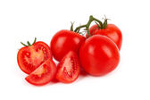 świeże pomidory z plastrami wyizolowanymi na białym tle