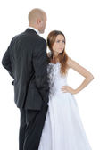 kobieta wyciąga pieniądze z kieszeni biznesmen