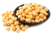 ciecierzyca w czarnej misce izolowane na białym tle