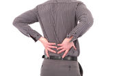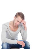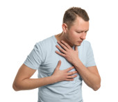 Mężczyzna, trzymając jego klatce piersiowej dłonią