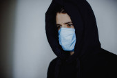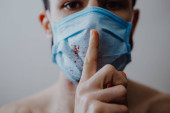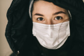 Zdjęcie "selektywne skupienie, efekt hałasu: kobieta nosząca maskę medyczną podczas pandemii chorób wirusowych jest objęta kwarantanną w domu" może być wykorzystywane do celów osobistych i komercyjnych zgodnie z warunkami zakupionej licencji Royalty-free. Obraz jest dostępny do pobrania w jakości wysokiej rozdzielczości do 5760x3840.