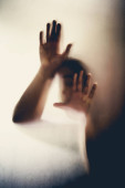 Samotny portret chorego na koronawirusy w izolacji, z załamaniem nerwowym i słabą odpornością, prosi o pomoc i leczenie