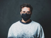 Zdjęcie "Portret mężczyzny w masce medycznej podczas epidemii koronawirusa. objawy niebezpiecznej choroby wirusowej: ból gardła, kaszel, gorączka" może być wykorzystywane do celów osobistych i komercyjnych zgodnie z warunkami zakupionej licencji Royalty-free. Obraz jest dostępny do pobrania w jakości wysokiej rozdzielczości do 5760x3840.