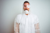 obowiązkowa maska medyczna dla każdego, kto opuszcza dom podczas kwarantanny. Zdjęcie młodego mężczyzny w kurtce i masce medycznej