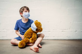 Matka i jej dwoje dzieci w maskach ochronnych podczas pandemii.
