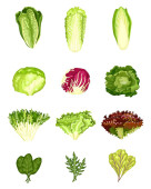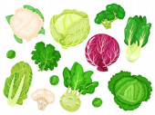 Piękny zestaw z akwarelą ręcznie rysowane zielone obrazy warzywne. Ilustracja.
