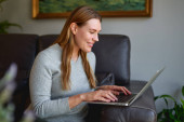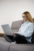 Zdjęcie "piękna kobieta korzystająca z laptopa w domu" może być wykorzystywane do celów osobistych i komercyjnych zgodnie z warunkami zakupionej licencji Royalty-free. Obraz jest dostępny do pobrania w jakości wysokiej rozdzielczości do 5760x3840.