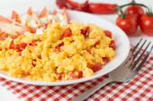 Zdjęcie "Miska jajecznicy domowej roboty z liśćmi bazylii i zbliżeniem pomidorów wiśniowych " może być wykorzystywane do celów osobistych i komercyjnych zgodnie z warunkami zakupionej licencji Royalty-free. Obraz jest dostępny do pobrania w jakości wysokiej rozdzielczości do 5760x3840.