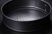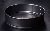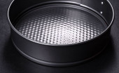 Okrągłe metalowe naczynie do pieczenia, izolowane. Formularz do pieczenia ze zdejmowanymi zderzakami.