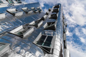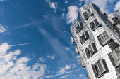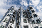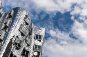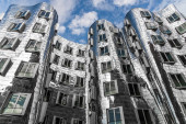 Dusseldorf, Niemcy - 11 sierpnia 2019: Widok na budynki Gehry Neuer Zollhof
