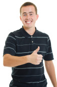 Zdjęcie "młody człowiek wesoły, Wyświetlono kciuk znak" może być wykorzystywane do celów osobistych i komercyjnych zgodnie z warunkami zakupionej licencji Royalty-free. Obraz jest dostępny do pobrania w jakości wysokiej rozdzielczości do 5760x3840.