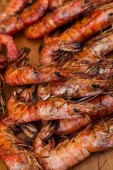 Smażony homar na białym talerzu, podszewka pod talerz, czosnek, zbliżenie