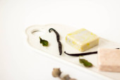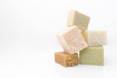Kawałki naturalnego mydła z kwiatami. Skóra. Zdrowie i uroda.