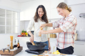 Zdjęcie "Widok z boku uśmiechnięta matka i córka patrząc w aparat podczas cięcia jabłko na stole kuchennym " może być wykorzystywane do celów osobistych i komercyjnych zgodnie z warunkami zakupionej licencji Royalty-free. Obraz jest dostępny do pobrania w jakości wysokiej rozdzielczości do 5760x3840.