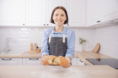 Zdjęcie "Cukiernik trzyma słodkie belgijskie cukierki czekoladowe na tle kuchni. Koncepcja domu dla małych przedsiębiorstw" może być wykorzystywane do celów osobistych i komercyjnych zgodnie z warunkami zakupionej licencji Royalty-free. Obraz jest dostępny do pobrania w jakości wysokiej rozdzielczości do 5760x3840.