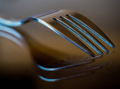 Widelec odbity na szklanej powierzchni.