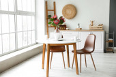 Wnętrze nowoczesnej stylowej jadalni z kwiatowym wystrojem