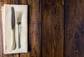 Zdjęcie "Zestaw sztućców na rustykalnym drewnianym stole. Widelec, łyżka i nóż. Koncepcja jedzenia. Przestrzeń kopiowania" może być wykorzystywane do celów osobistych i komercyjnych zgodnie z warunkami zakupionej licencji Royalty-free. Obraz jest dostępny do pobrania w jakości wysokiej rozdzielczości do 5760x3840.