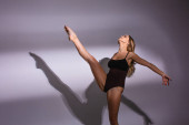 Tancerka, elastyczny plastik, tańcząca w skoku. światło reflektorów, cień dłoni.