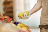 Zdjęcie "Zbliżenie nierozpoznawalnego mężczyzny ze świeżymi gruszkami i granatami sprzedającego owoce i warzywa na targu rolniczym, przestrzeń do kopiowania" może być wykorzystywane do celów osobistych i komercyjnych zgodnie z warunkami zakupionej licencji Royalty-free. Obraz jest dostępny do pobrania w jakości wysokiej rozdzielczości do 5760x3840.