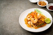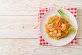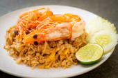 Olbrzymie krewetki smażony ryż z pastą krewetkową na płytce