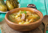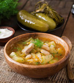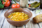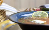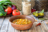 Zupa kharcho. Gruba zupa wołowa z ryżem, pomidorami, marchewką, papryką i przyprawami. Tradycyjne danie kuchni gruzińskiej.