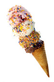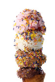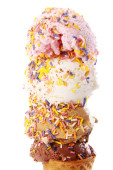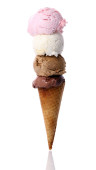 Stożek z gofrownicą z czterema gałkami lodów odizolowanymi na biało