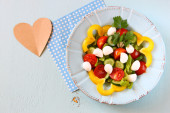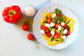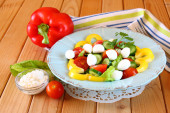Zdjęcie "나무 테이블 배경에 신선한 야채와 모 짜 렐 라 샐러드." może być wykorzystywane do celów osobistych i komercyjnych zgodnie z warunkami zakupionej licencji Royalty-free. Obraz jest dostępny do pobrania w jakości wysokiej rozdzielczości do 5760x3840.
