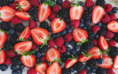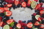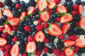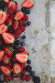 różne rodzaje świeżych jagód na tle zdjęcie zrobione z góry
