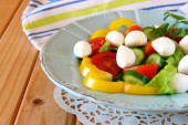 Zdjęcie "나무 테이블 배경에 신선한 야채와 모 짜 렐 라 샐러드." może być wykorzystywane do celów osobistych i komercyjnych zgodnie z warunkami zakupionej licencji Royalty-free. Obraz jest dostępny do pobrania w jakości wysokiej rozdzielczości do 5760x3840.