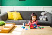 Zdjęcie "Portret pięknej białej dziewczynki, gotowej do szkoły w domu i uśmiechniętej" może być wykorzystywane do celów osobistych i komercyjnych zgodnie z warunkami zakupionej licencji Royalty-free. Obraz jest dostępny do pobrania w jakości wysokiej rozdzielczości do 5760x3840.