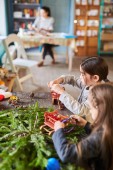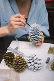 mały chłopiec malarstwo szyszki na Boże Narodzenie