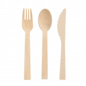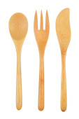 Jednorazowy zestaw drewnianych sztućców izolowany na białym tle