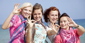portret trzech pięknych dziewczyn. Licznik światła na backgro