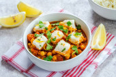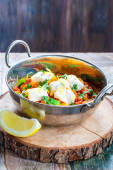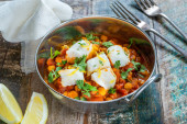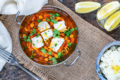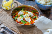 Dorsz curry z ciecierzycą, świeżą kolendrą i ryżem