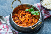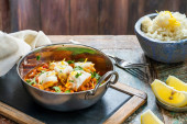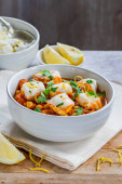 Dorsz curry z ciecierzycą, świeżą kolendrą i ryżem