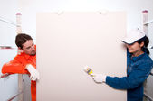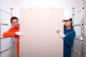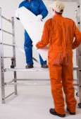 pracowników budowlanych (płytkie dof, przodu koncentruje się)