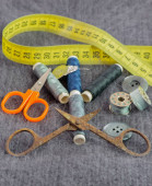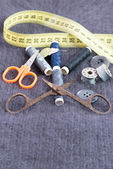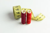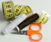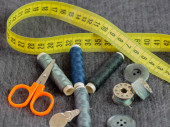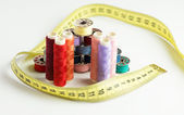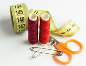 Nici do szycia w różnych kolorach w sklepie krawieckim na białym tle