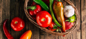 widok z góry pyszny sos pomidorowy w misce w pobliżu świeżych dojrzałych warzyw, grzyby, panoramiczny strzał
