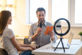 Zdjęcie "Ciemnowłosy mężczyzna i jego ciężarna żona siedzą w kuchni i czują się dobrze" może być wykorzystywane do celów osobistych i komercyjnych zgodnie z warunkami zakupionej licencji Royalty-free. Obraz jest dostępny do pobrania w jakości wysokiej rozdzielczości do 5760x3840.