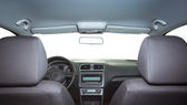 Mężczyzna jazdy samochodem z wyświetlaczem deski rozdzielczej izolowane na białym tle