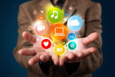 Zdjęcie "Multimedialne ikony w rękach przedsiębiorcy" może być wykorzystywane do celów osobistych i komercyjnych zgodnie z warunkami zakupionej licencji Royalty-free. Obraz jest dostępny do pobrania w jakości wysokiej rozdzielczości do 5760x3840.